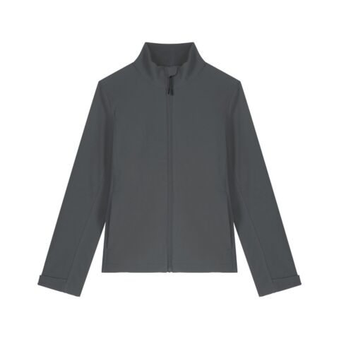 Women’s softshell jacket, medium fit with a high collar and set-in sleeve. Bottom hem with adjustable plastic stopper and elastic cord. Reverse nylon zip at centre front. Zipped outside welt pockets with reflective elastic puller. Fully bonded inside fleece layer. Side panels and stretch for better shape. Adjustable hook and loop sleeve opening. Inside seams finished with recycled binding. Water-repellent up to 10,000mm, breathability up to 3000G/M2/24hrs allowing perspiration to escape. Windproof. Bionic ECO DWR (durable, water-repellent) finish.