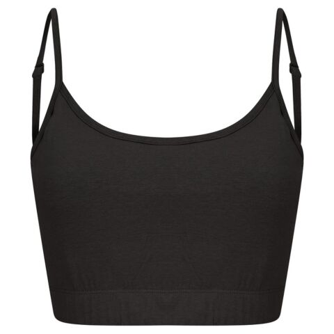 Women’s cropped top/bralette. Adjustable spaghetti straps. Bound neck and armholes. Double-layer front for secret support. Rib-length with concealed elastic band. Brand-free, for easy rebranding. Contains recycled cotton and recycled polyester.