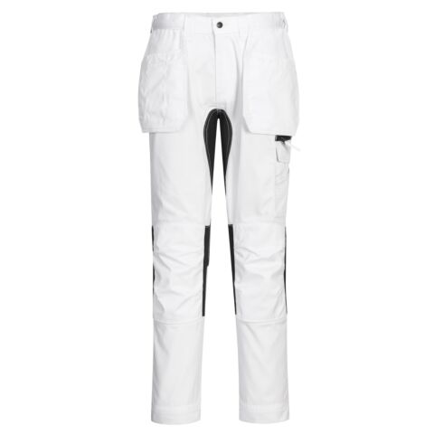 A durable polyester/cotton blend fabric allows for high-performance maximum range working, as well as comfort. Stretch panelling offers easy movement. Clever features include multifunctional holster pockets, top-loading kneepad pockets and an easy access multi-way thigh pocket for secure storage of phone, keys and tools.