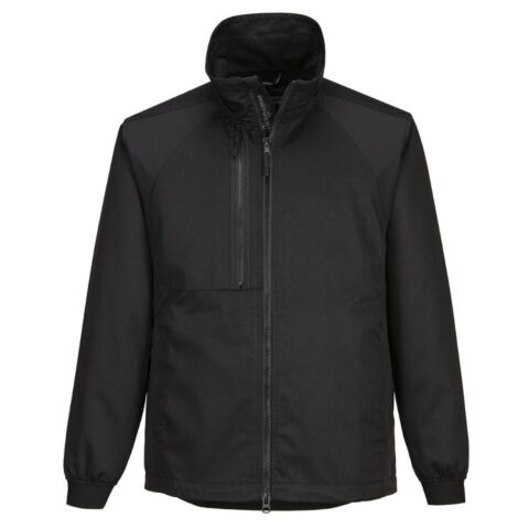 Polyester/cotton jacket with four-way stretch panels and chest zip pocket. Recycled polyester fabrics. Easy to embroider. 40+ UPF-rated fabric.